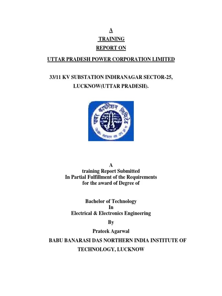 33/11kv substation training report pdfdownload pdf of summer trainingdownload . 1.6 training of the counterparts. Summer training report on uttar pradesh corporation limited 132/33. 132 kv outgoing feeder voltage: 1.3 site selection & layout 33/11 kv substation: